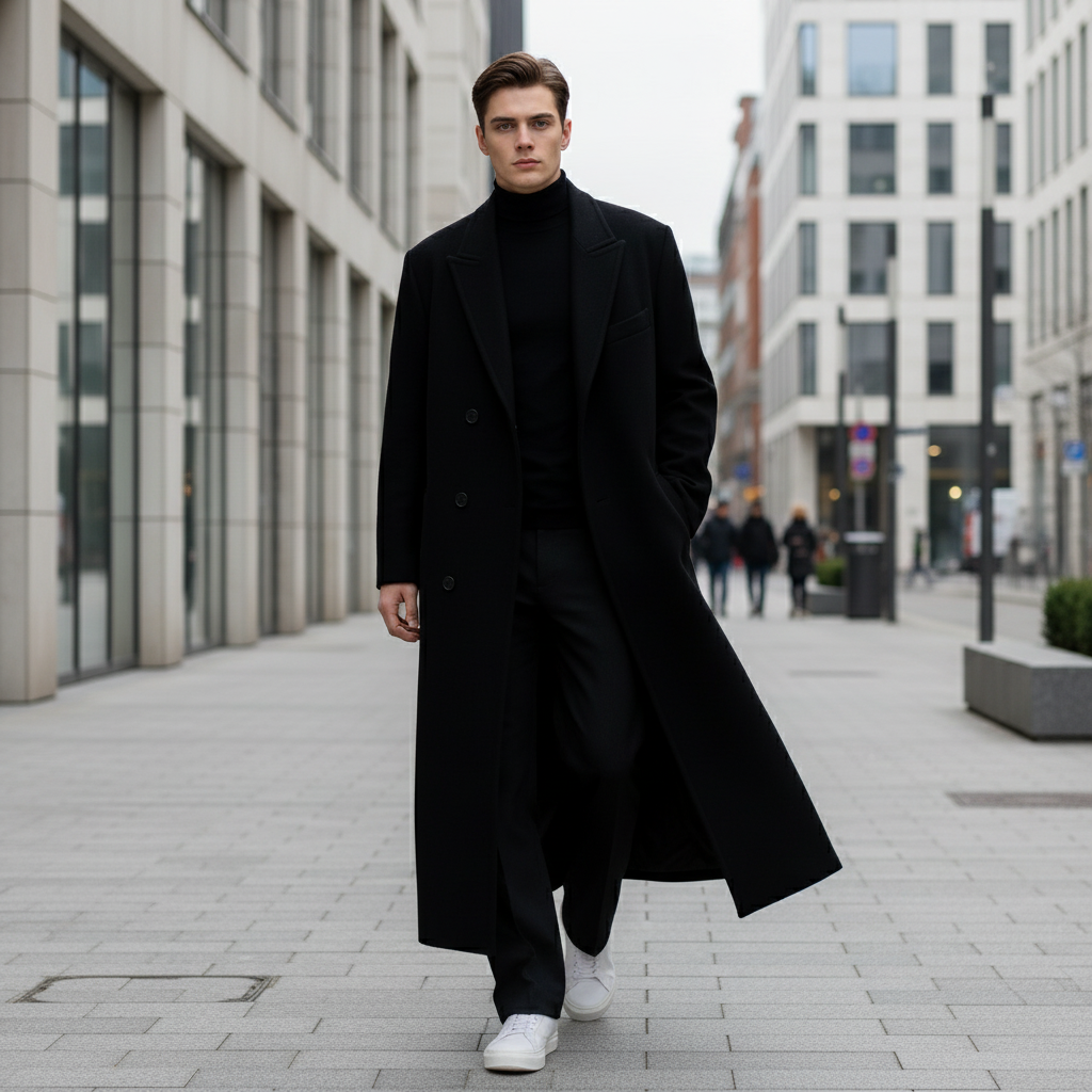 Ronant / Men’s Long Puffer Trench Coat with Hood